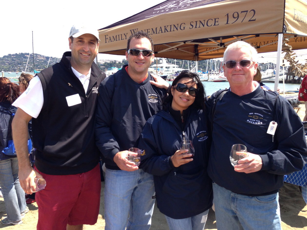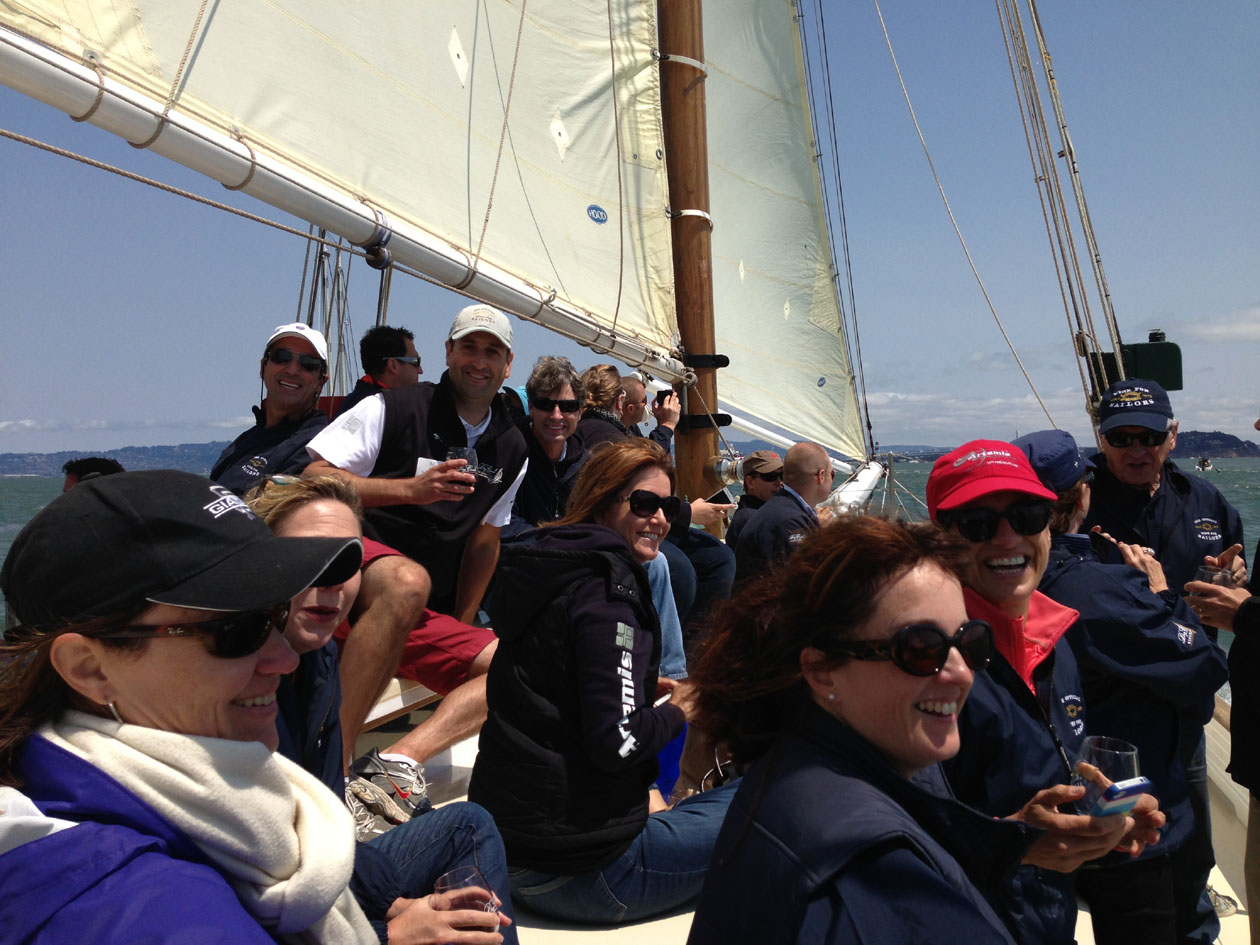 Lately, I feel like I've been a part of a Christopher Cross music video. You know the song - "Sailing, takes me away to a place....." I This past week, we kicked off the first of a series of sailing adventures aboard the 70 foot scow schooner, the Gaslight. Based out of Sausalito, CA, this incredible boat was lovingly built by hand by Captain Billy Martinelli. Our event began with a beach party right on the water near the dock. Guests arrived and were outfitted with Wine for Sailors wind shirts and a souvenir wine glass. Wine and appetizers were served and the Steel Jam band provided the tunes as we all warmed up for our big day on the Bay. After shoving off, At the starting line, each of the boats jockeyed for position trying to beat the other to the gun and be in a good position for the first mark. That's when it really got exciting. As the boats headed down wind, they picked up speed like high performance sports cars. Each of them went up on their foil which essentially causes the entire catamaran to come out of the water and "fly" across the top of the Bay. Within seconds, they were traveling at speeds As our day wound down, we all relaxed aboard the Gaslight swapping stories and sipping delicious Dry Creek Vineyard wines. Everyone left having a new appreciation for the sport of sailing and with memories to last a lifetime. Personally, I can hardly wait for our next sail! |