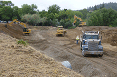 There's been a slow transformation taking place behind the winery and my house these last couple of months. If you've driven over Lambert Bridge you might have even seen it. In a way it looks like a moonscape...or something otherworldly. Tall trees stick out of the earth with their roots reaching to the sky. Large pieces of equipment are scattered here and there. Boulders are bolted together in piles. |